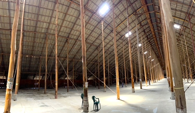 It measures 265m in length, 60m in width and is almost 20m high at its apex. Covering 16,000m2 under roof, it held 3.5 million bushels (92,500tonnes) of grain.